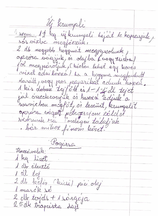 A húsokhoz tejfölös újkrumplit ettünk. A krumpli receptje egyszerű. Ízletes burgonya étel ez, mely magában is megállja a helyét. A kézírásos burgonya recept után következik a pogácsa. Zseniális volt, akárcsak Vámos Attila borai. Az Erdélyből érkezett Marika néni kéz- és helyesírásával a recept itt olvasható.