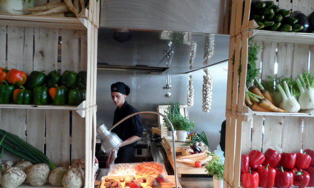 „Kóstolja meg az általa kitalált új bisztronómiai vasárnapi ebédet a Paris Budapest Étteremben, ahol minden bizonnyal úgy fogja érezni magát, mintha egy piacon lenne. Több, mint 50 hozzávaló közül választhat, különböző húsokból, halakból, friss salátából és zöldségekből, ízletes szószokból és fűszerekről, hogy összerakja saját fogásait. Az egyetlen különbség, hogy a piaccal szemben, itt minden álom valóra válik, és amit kiválasztunk abból azon nyomban egy ínycsiklandó ebéd válik.”
