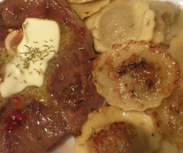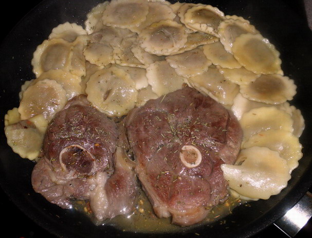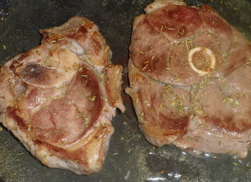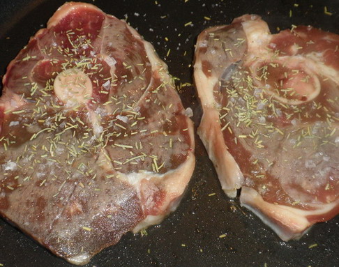 AUSZTRIÁBAN vettem két szelet báránycsülköt (Lammkeule), úgy 1-1,5 cm vastagot, amilyen volt. A vargányás tortelli is onnan származott, aztán úgy gondoltam, hogy a kettő remek kombinációja lesz az ebéd. Egyébként is kedvelem a tészta, hús párosításokat, s ez ráadásul gyorsan el is készíthető. A húst olíva olajjal vékonyan bekentem, Maldon sóval sóztam és így tettem a felforrósított serpenyőbe.