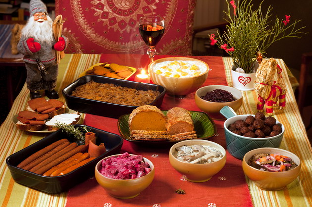 A svéd ünnep a következő két hétben is folytatódik, hogy végül a karácsonyesti vacsora (Julafton) ünnepi asztalánál érje el kulináris csúcspontját. A karácsonyi svédasztal (julbord) becses fogásai a svéd karácsonyi sonka (julskinka), a szárított tőkehal (felhasználás előtt beáztatva), az ecetes hering, a sóval, cukorral, kaporral érlelt nyers lazac (gravlax), az elmaradhatatlan húsgolyók, kolbászok, burgonya, vörös káposzta, rizspuding (risgrynsgrot) és a már megidézett lúgos hal.