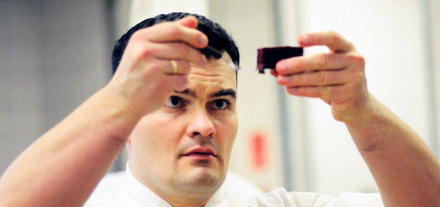 Az előétel kóstolója az Aranykaviárban Győrffy Árpád séffel (áll) és dr. Zilai Zoltánnal, a Magyar Bor Akadémia főtitkárával (hátul) (Fotó: Csíki Sándor)