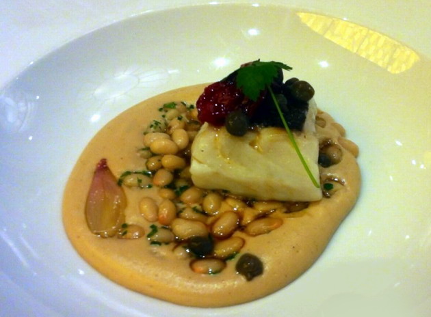 - Hal fogás: Tőkehalfilé gesztenyehab ágyon gyöngybab koszorúban (Pesti István chef, Egykettő BistroPub)