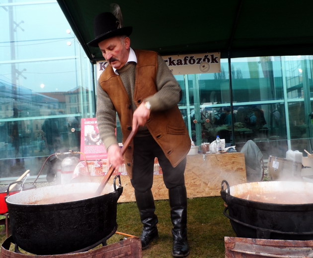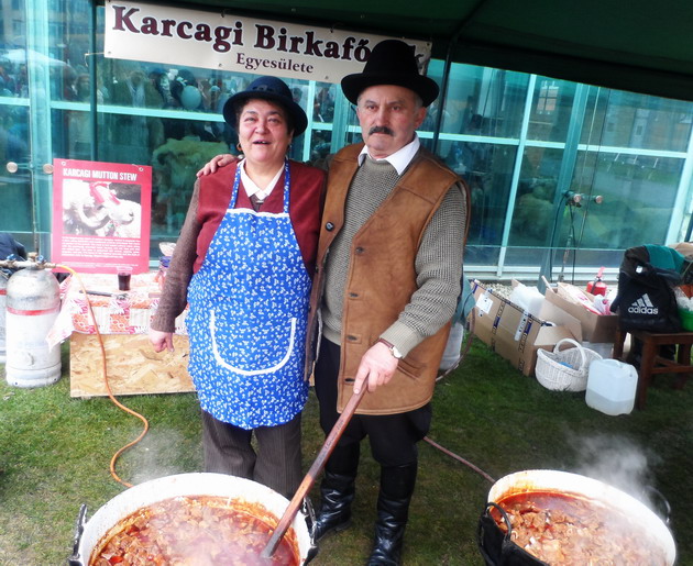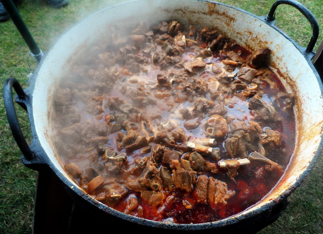 A nyüzsgésben vásárolni nem akartam, s miközben jókat derültem a színvonalas gyermekműsorokon és konstatáltam, hogy sikerült elkerülni a giccses magyarkodást, rövid nézelődés után indultam is hazafelé. Igen ám, de az udvaron megláttam Csontos Györgyöt és családját, Karcagról, amint éppen főzték a birkapörköltet, ahogy azt már 2012-ben bemutattam. Arrafelé vettem az irányt és maradtam is, mert az a birkapörkölt, amit Csontos Györgyék főznek, megérdemli a várakozást! Nem mesélek erről most többet, akinek alkalma lesz, ne hagyja ki és kóstolja majd meg. Aláfestésül, álljanak itt a képek.