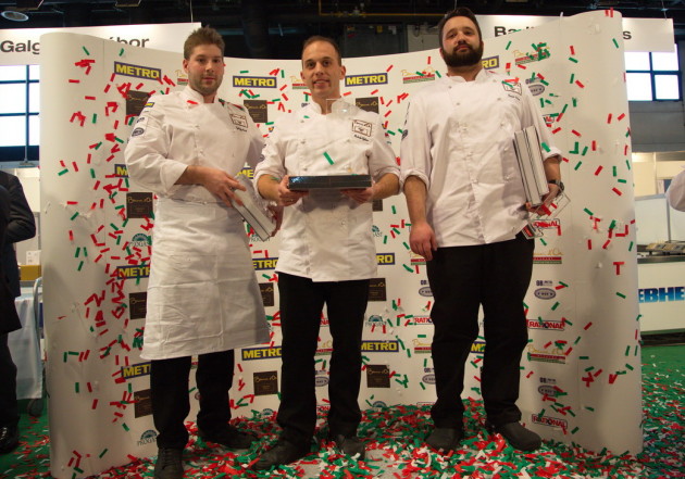 A Bocuse d’Or magyarországi döntőjének első három helyezettje: Győrffy Árpád, Molnár Gábor, Daniel O’Shea (Fotó: Bocuse d’Or Akadémia)
