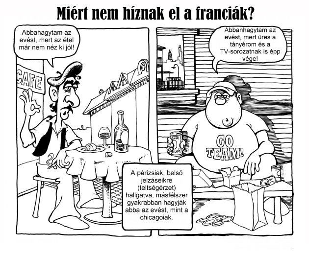 Párizsi és chicagói kísérleti személyeket vizsgálva kiderült, hogy a franciák jóval inkább hallgatnak a belső jelzéseikre és jóval inkább számít az étel minősége, mint az elhízottabb chicagóiak körében.