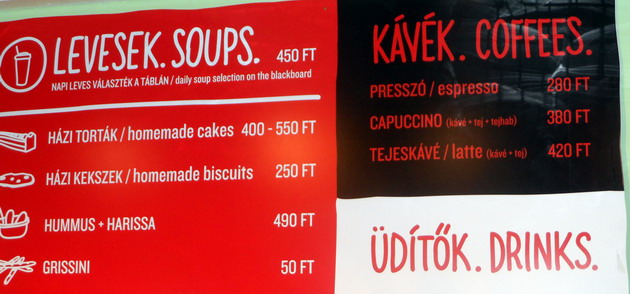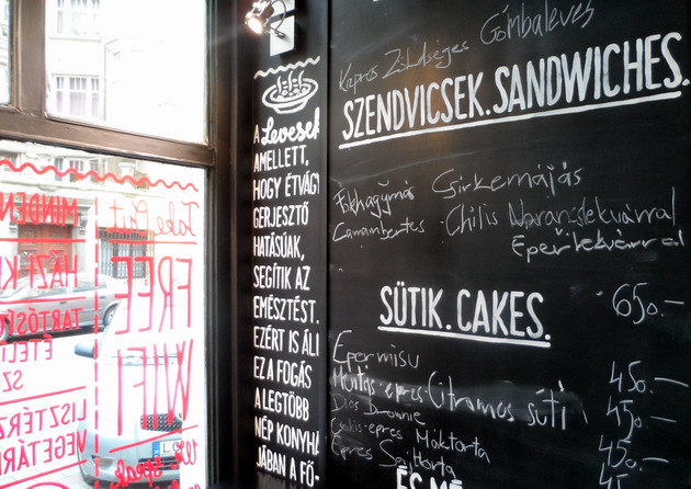 - Jó ízek, jó árak. A közönség fiatal (18-23), az étel friss. A zelleres csirkés szendviccsel ugyan leettem a tavaszi zöld nadrágom, de még így sem tudok mást mondani róla, mint hogy kiváló volt az íze. Izgalmas, eleven, jó, akárcsak az ázsiai ihletésű sertésoldalas, vagy a eper. A kávéjuk kellemesen krémes (hogy miféle márka, ezúttal nem is érdekes), a máktorta finom. Sajttorta is volt, de az most nem érdekelt. Nem egy professzionális étteremben is jó lenne viszontlátni ugyanezt az elszántsággal teli elevenséget. Érdemes kipróbálni, aztán döntsön mindenki maga. Nekem tetszett.