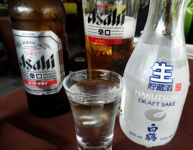 Az étteremben a 3 féle japán sör, és a 10 féle szaké mellett jó borválogatás és pezsgők is találhatók