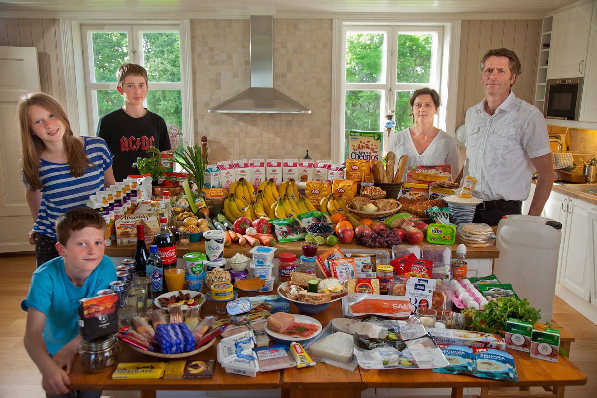 - Norvégia: az Ottersland Dahl család (Gjettum) heti élelmiszer számlája 2211.97 NOK (79.033 Ft). Kedvenc ételeik a friss kenyér vajjal és cukorral, a palacsinta, a paradicsomleves makarónival, a hideg tej és joghurt.