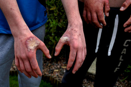 furokumarin származékokkal való érintkezés következményeként, az UV-A (320-400 nm) sugárzás hatására súlyos fototoxikus bőrreakció, fény hatására kialakuló bőrgyulladás (photodermatitis) alakulhat ki.