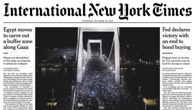 „Ilyen körülmények között…” (Az internetadó elleni tüntetés az International New York Times 2014. október 30-ai számának címlapján)