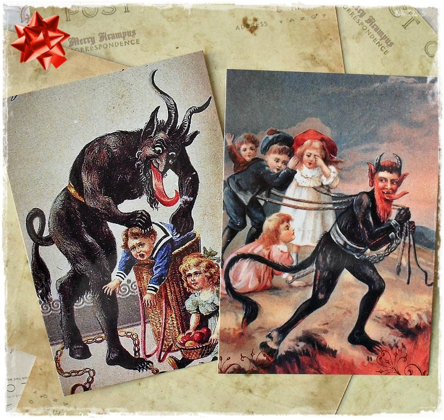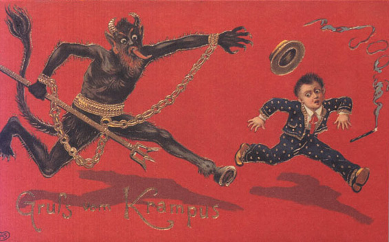 krampus-xmas-photoKRAMPUSZ – Az ördögi megjelenésű, gonosz krampusz, a német hiedelemvilágból, az alpesi folklórból került a jó gyermekeket megjutalmazó Mikulás mellé. Mint a világnak ezen a részén mindenki tudja, december ötödikén illik a csizmát fényesre tisztítani, és úgy az ablakba tenni. Reggelre pedig, a Mikulás ajándékot, a Krampusz virgácsot tett a csizmába, mindenkinek érdeme szerint. A rossz gyerekeket pedig a Krampusz el is