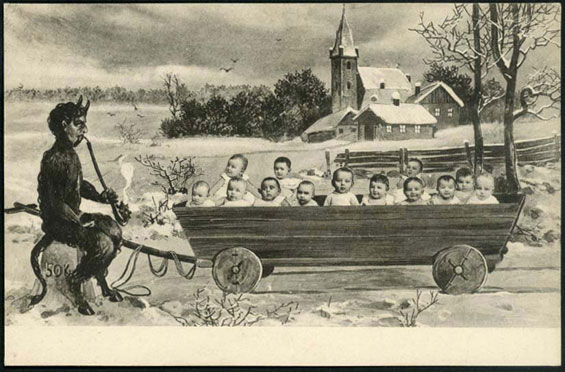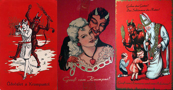 Pedofília gyanús Krampuszt ábrázoló képeslapok a 20. század elejéről.