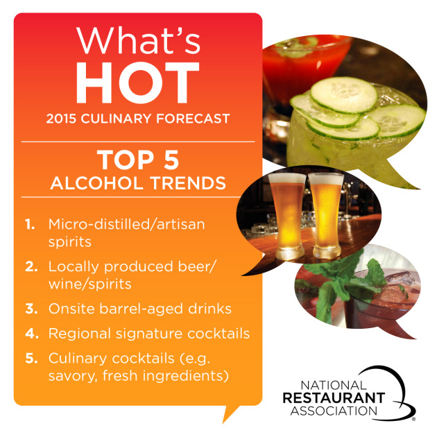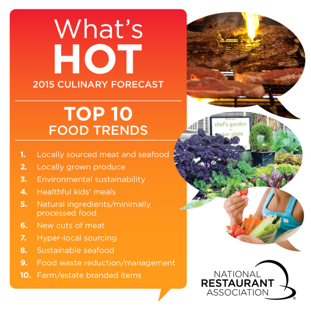 GASZTRONÓMIAI Trendek címmel immár 7. esztendeje, hogy minden év végén, vagy január első napjaiban megjelenik a FOOD&WINE trendekről szóló írása. Ezeknek a jóslatoknak a gerincét az amerikai National Restaurant Association (NRA) legfrissebb felmérése adja. 2014 végén az American Culinary Federation (ACF) tagjai közül, a korábbi évekhez hasonlóan, közel 1.300 séf