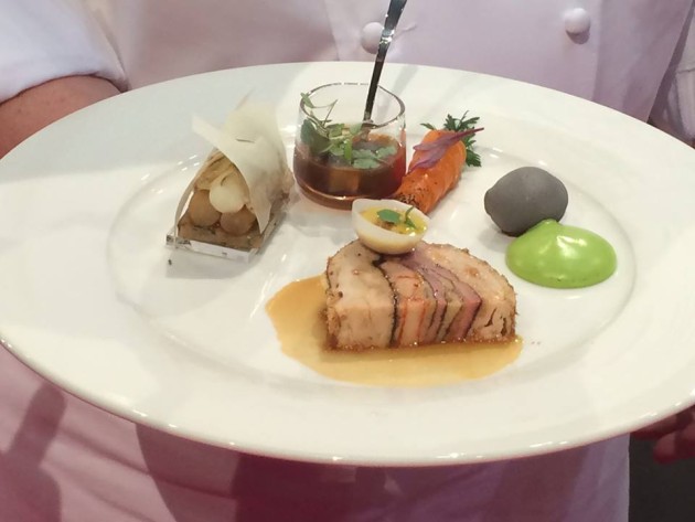 - Pisztráng: Pisztrángfilé fűszeres zöldség-juliennel és scampival töltve, torma és tintaspagetti-ívvel a tetején meglepetés zöldségekkel körítve. Köretek: A halétel „titkos összetevőjét” a verseny előestéjén leplezték le; az édesköményből rögtönzött a csapat. Hétfőn este, a helyszínen kialakított piac zöldségkínálatából az alábbi friss alapanyagokat választották: burgonya, zöldalma, fehérhagyma, gyömbér, kapor, sütőtök, japán articsóka, vörös-és cirmos cékla, póréhagyma és tarlórépa.