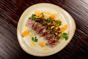 Tonhal, ropogós kelbimbó, klementine és korisander (Tuna, Crispy Brussels Sprouts, Clementine and Coriander, Buddha-Bar)