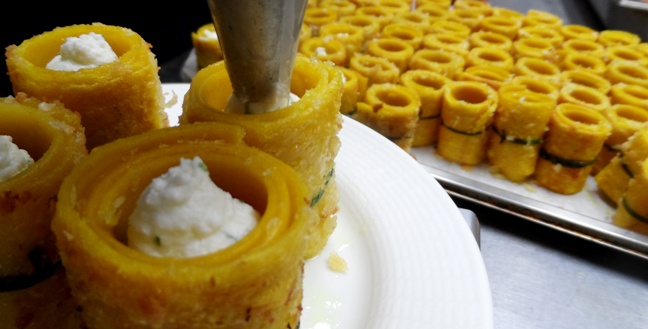 A konyhában készül a házi rikottával töltött tészta, beurre blanc-nal, gombákkal. Egyszerű, tiszta ízvilágú, élvezetes húsmentes fogás. Üde, harmonikus zamatokkal, jó savakkal, textúrákkal. Megszerettem ezt az emlékezetes ételt. Jó hozzá a furmint!