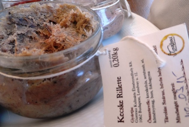 A kecske mellett klasszikusok is étlapon vannak, mint a vasárnapi ebédre fogyasztott „nyakleves” lúdgégetésztával, külön tálalt velővel. A hideg előételek között nagyszerű pástétomok, rilette is megvásárolható.