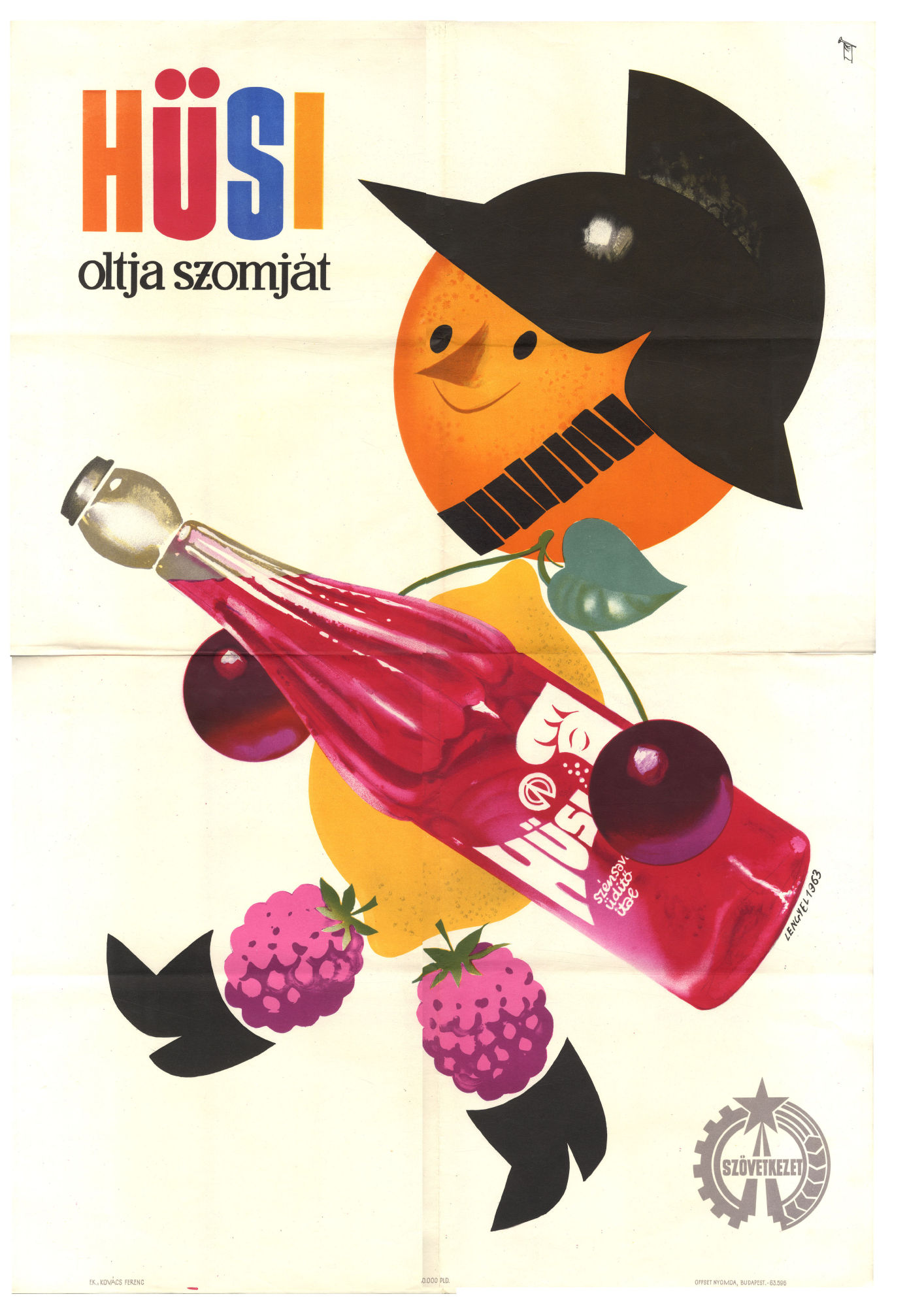 husiA 60’-as évek elejétől, az Általános Fogyasztási és Értékesítési Szövetkezet (ÁFÉSZ) forgalmazta a Bambihoz hasonlóan csatos üvegű, Hüsi nevű, málnaízű szénsavas üdítő italt. Lengyel Sándor grafikus 1963-ban rajzolt plakátján a kor reklámjainak puritánságával csupán annyit közölnek: „Hüsi – oltja szomját”. Minek is több, gondolhatnánk, miközben, e néhány szó, akár jelentős előrelépésnek is tekinthető az Üdítő elnevezésű üdítő zen buddhizmust idéző, minimalista világához képest. A Coca-Cola és Pepsi Cola felé való sodródás megállíthatatlan volt, mint azt a következő részben olvasva is láthatjuk, pedig voltak reményteljes magyar üdítők…