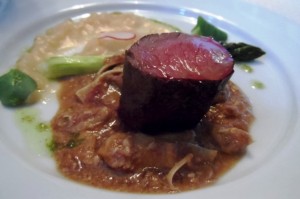 Egerben, az egri bikavér nemes fajtáihoz komponálva, egy valamire való borvacsora aligha képzelhető el valamiféle vad, leginkább szarvas nélkül. Gál Gábor ételében megtaláljuk a szarvast, nagyszerűen elkészítve, s hozzá a plebejus hevületű gasztro-fricska, a malacragu. A szarvashoz normálisan soha nem adott olcsóságú alapanyagokból, porcos részekből készített malacragu a szarvas szöges ellentéte. A „zöldségek királya”, a spárga, a klasszikus felfogás, és minden felfogás szerint vizsgálva is illő alkatrésze volt az ételnek. Érdekes kontrasztok, játékosság, kiemelkedő hús.