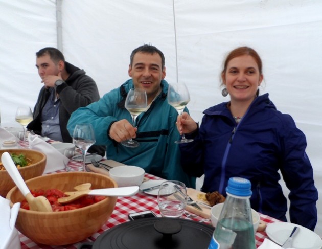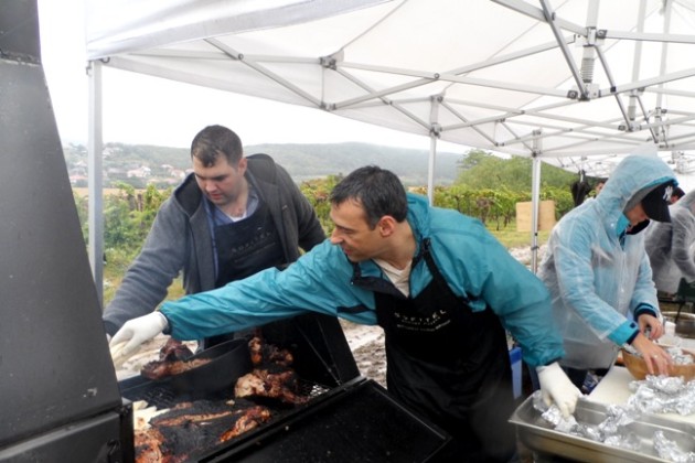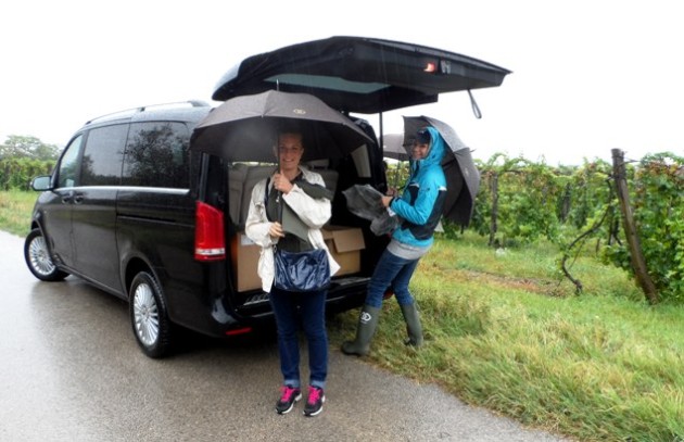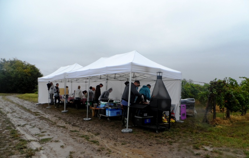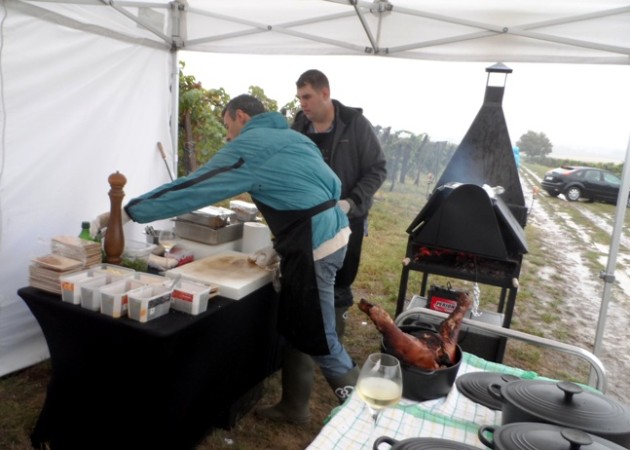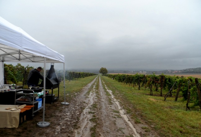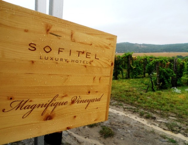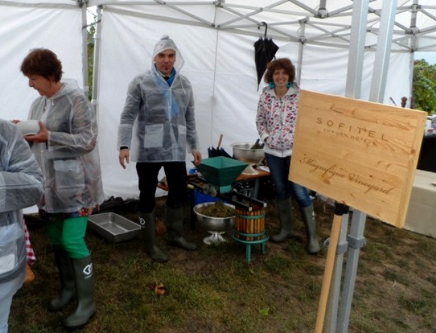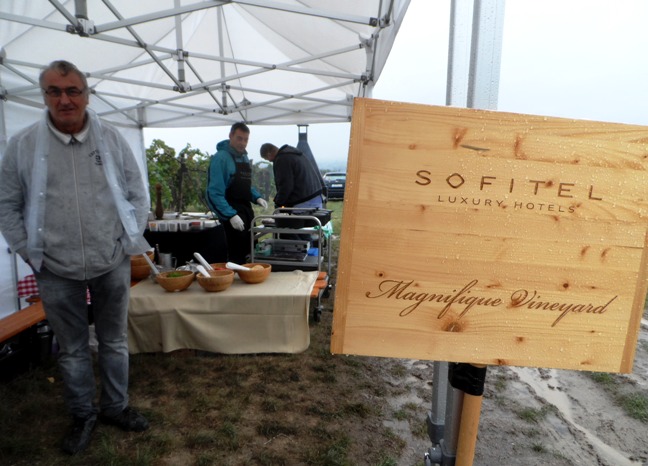 SOFITEL SZÜRET & DEFF HAUPT – Az eső hajnal óta reménytelenül zuhogott. Küldtem is egy sms-t, hogy tényleg lesz-e Sofitel szüret. Lett, s nem is bántam meg, hogy elmentem. Ismét jól sikerült, mint az előző évben, amikor sütött a nap. Most esett, de akadt gumicsizma, esőkabát, s poharainkba a Sofitel bora, a kiváló Ries-Link, amit Szentesi József készít a nadapi szőlők terméséből, s amit minden évben egy hozzáértő csapat választ ki több lehetséges cuvée variáció közül.
