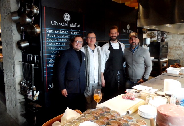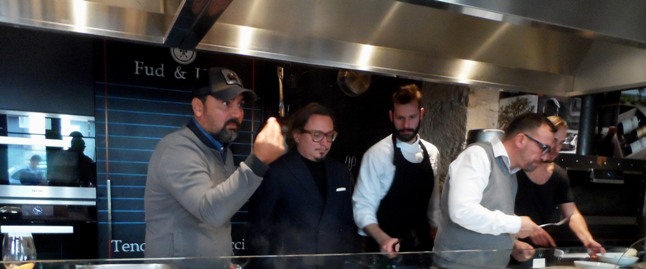 A képen balról: Bruno Pessot (Jolanda de Colo), Csíki Sándor (Food&Wine), Giuliano Lorenzon (Jolanda de Colo) és Gianni Annoni (Pomo d’Oro)