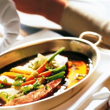 TAFELSPITZ (ejtsd: táfelspicc; magyar megfelelője: tányérhús) – A táfelspicc, vagyis a tányérhús mifelénk is jól ismert, az ínyencek körében pedig valósággal szent fogalom. Krúdy Gyulának a nagy gazdasági világválság (1933) alatt kelt sorai szerint „A tányérhús nem más, mint korán feltett „tehénhús”, az első főzet levessel, zöldséggel, mikor még csak a répafélék puhák, ám a burgonyák a levesben, de a kalarábék, a vöröshagymák nincsenek még kellően átfőve. De a kel levele, bimbója, a zeller már igen jó a leveshús mellé,