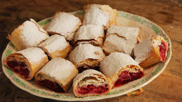 „Művészet, ahogy a kihúzott asztalokon két lány, kétfelől egy ökölnyi tésztát olyan szélesre kinyújt, mint maga az abrosz, hogy azt egy régi római nő mint palástot felvehetné. Azt pedig Magyarországon meghintik tejföllel, zsírral, mandulával, mazsolaszőlővel, aztán összehengerítik, boa konstriktori alakban tepsibe terítik, spanyol inkvizítori raffinériával lassú tűzön megpirítják, s szánakoznak a barbár népeken, akik ezt nem ismerik.”