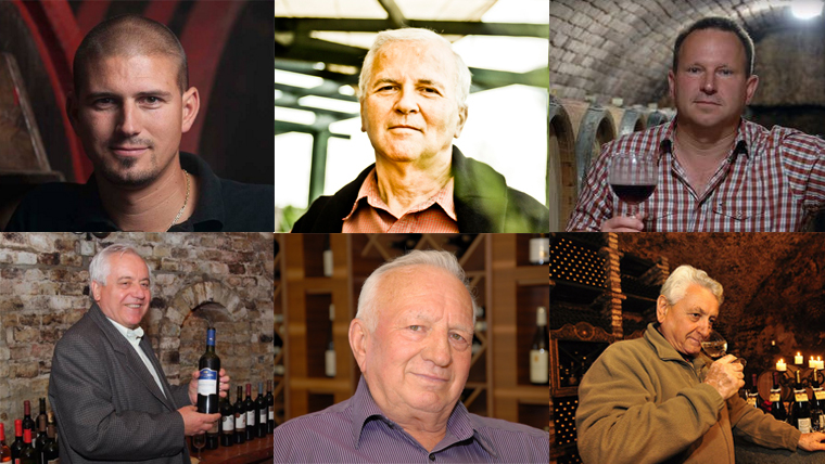 Az Év Bortermelője Magyarországon 2015 jelöltjei (bal felső saroktól): Borbély Tamás, Jásdi István, Mészáros Pál, Szőke Mátyás, Szöllősi Mihály