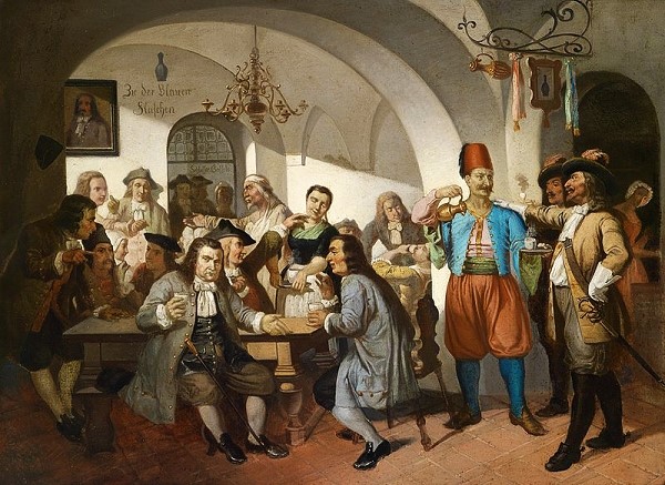 Bécsben, az 1683-ban megnyílt „Hof zur Blauen Flasche” (Ház a kék flaskához) volt a legenda szerint az első kávéház. Ukrán-lengyel tulajdonosa a kávészerető bécsiek legnagyobb örömére, cukrot is tett a kávéba, és – új találmányként – tejet is. A London Gazette említett számának megjelenése idején, Anglia szerte már háromezer legális kávékimérés működött, és, akárcsak a brandyra, a kávéra is egyfajta agy-tonikként tekintettek. „A kávé, szigorúvá, komollyá és filozofikussá tesz bennünket”– írta Jonathan Swift angol író 1722-ben. S, miközben a teaivó angolok közül is egyre többen itták, II. (Nagy) Frigyes porosz király, arra való hivatkozással, hogy az alattvalói túl sok pénzt költenek kávéra, 1677-ben éppenséggel betiltotta a fogyasztását. Nagy Frigyes valamit kétségtelenül jól érezhetett, mert a porcukorral meghintett vasárnap délutáni kuglófjaikat gőzölgő filteres kávéval fogyasztó németek, a konyaktermelő franciákkal, és az édesszájú amerikaiakkal hármasban, a világ legnagyobb kávéfogyasztói.