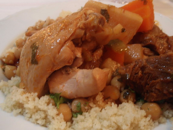 A hét összetevő lehet négy, vagy öt is, attól függően, hogy mihez jutunk hozzá, de lehet más is, mint a felsoroltak, és mint említettem, az összetevők aránya szabadon változtatható. (Youcef kuszkuszában sárgarépa és burgonya is volt, amik ugyancsak nem idegenek a kuszkusztól.) A Maghreb falvaiban készülő kuszkuszhoz hasonló a Közép-Kelet országaiban készülő maftul és a mughrabiyya