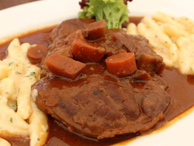 Borjú Osso bucco paprikás mártásban juhtúrós házi nudlival. (Merops Étterem, Szekszárd)