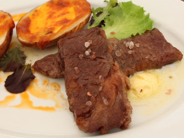 Az étterem étlapján marha steak-ek is szerepelnek. A Tüskepecsenye (250 g) a hozzá választott töltött burgonya hajóval a húsok kedvelőinek kedvelt fogása lehet.