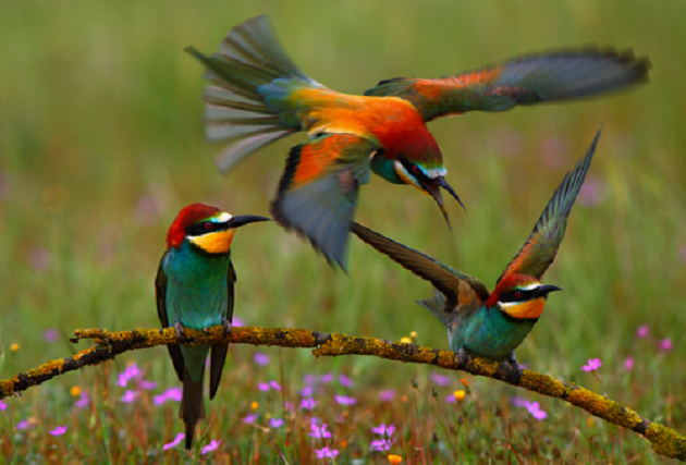 A társaságkedvelő Merops apiaster (gyurgyalag)