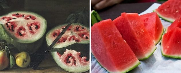 „A görögdinnye (Citrullus lanatus var. lanatus) a tökfélék (Cucurbitaceae) családjába tartozó, Afrika déli részéről származó növényfaj, illetve annak termésének a neve. Sokan édes íze miatt gyümölcsnek tartják, de termesztéstechnikailag zöldségnek számít. (…) David Livingstone, a híres Afrika-kutató, úgy írja le a görögdinnyét, hogy a Kalahári-sivatagban rengeteg található belőle, úgy gondolják, hogy innen származik, és itt szabadon nő. Nem ismert, hol termesztették először, de a legkorábbi feljegyzett görögdinnyeszüret nagyjából 5000 évvel ezelőtt a dinasztikus Egyiptomban történt…” (Forrás)