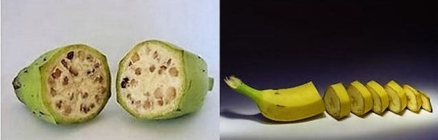 „A banán (Musa x paradisiaca) a trópusokon elterjedt és termesztett egyszikű, lágy szárú, bár gyakran fatermetű növény. Levelei egymásra borulva 3–5 méter magas áltörzset alakítanak ki. Lecsüngő, összetett fürtvirágzata van. Évente 50–70 kg keményítőben gazdag, utóérő gyümölcsöt hoz (tulajdonképpen áltermés). Termése bogyótermés.” (Forrás)