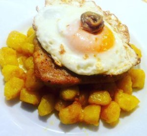 - Helyezzük a burgonyára a húst, tegyük rá a tükörtojást, s minden tükörtojásra egy vagy több szardellát. Forrón tálaljuk!