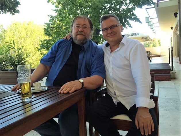 Ambrus Lajos József Attila-díjas íróval, a FOOD&WINE állandó vendégszerzőjével, a Borászok Barátja 2017 jelöltjével Szombathelyen. (A sört a borbírálat után én rendeltem. )