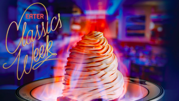 „CLASSIC BAKED ALASKA 13 Walnut Cake, Apricot Jam, Banana Gelato, Meringue (Created by Charles Ranhofer 1867)”