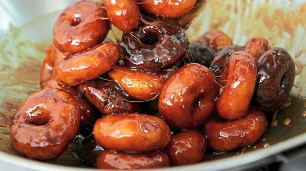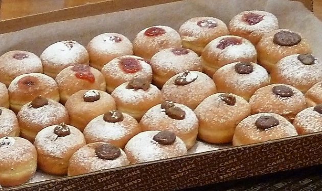 A Hannukah idején sütött fánk Izraelben, a szivacsosságra utaló nevű „sufganiyah”.