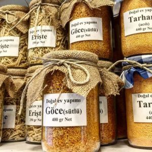 - Göce tarhana: A goce tarhana készítésekor a búzatöretet (bulgur) joghurttal, vagy íróval keverik össze, majd 24 óráig erjedni hagyják. Ezt követően a sűrű keveréket apróra zúzzák és napon szárítják. A göce tarhana Közép- és Kelet-Törökországban is általános.