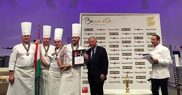 Vomberg Frigyes, Hamvas Zoltán, Szabó Kevin és Széll Tamás a legjobb húsételnek járó különdíjjal (2017, Lyon)