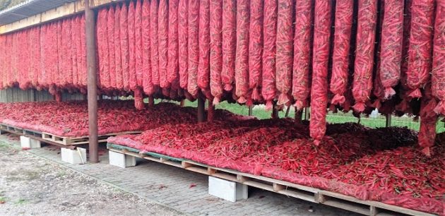 - A „csipedett” paprikát ezután mossák, szeletelik, tálcákra terítik, és 18-20 órás, kíméletes, alacsony hőfokon (55-60 C°) történő szárítással, szárító kamrákban csökkentik a paprika víztartalmát.