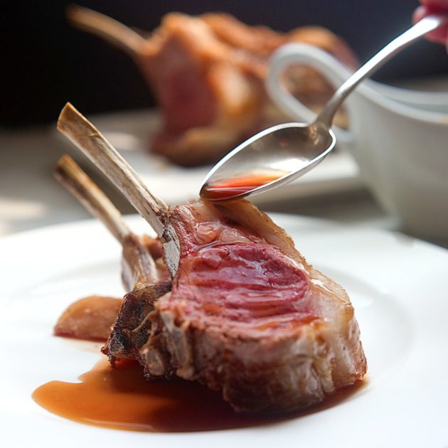 - ZSÜ (fr. jus: szaft, pecsenyelé) – A természetes „jus” nem más, mint a húsból a sütéskor kifolyó és a forró sütőben lezajló kémiai reakciók során íz- és illatmolekulák százaival tovább gazdagodó húsnedv, pecsenyelé. Jobb éttermekben általában egy ún. alap-pecsenyelevet (jus) készítenek, amely a továbbiakban számos kifinomult mártás alapjául szolgálhat, illetve, amelyből aztán újabb speciális jus-típusokat állíthatnak elő, például galamb, bárány (a képen), marha, vagy nyúlhúshoz.