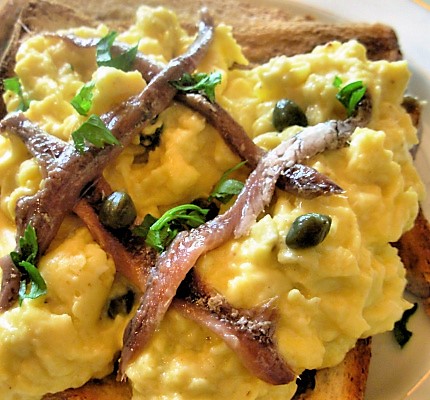 SCOTCH WOODCOCK – A Scotch Woodcock a legkevésbé sem skót. Ami pedig a „woodcock” szót illeti, az lehet erdei szalonka is, de az együgyű ember jelölésére is használják. Itt leginkább erről van szó, mivel a Scotch Woodcock szendvics még nyomokban sem tartalmaz erdei szalonkát, ellenben meglehetősen egyszerű, „együgyű”, s persze finom is, különben nem írnék róla. A szendvics nem különösebb bonyolult, ahogy azt már említettem. Amire szükségünk van hozzá az nem más,