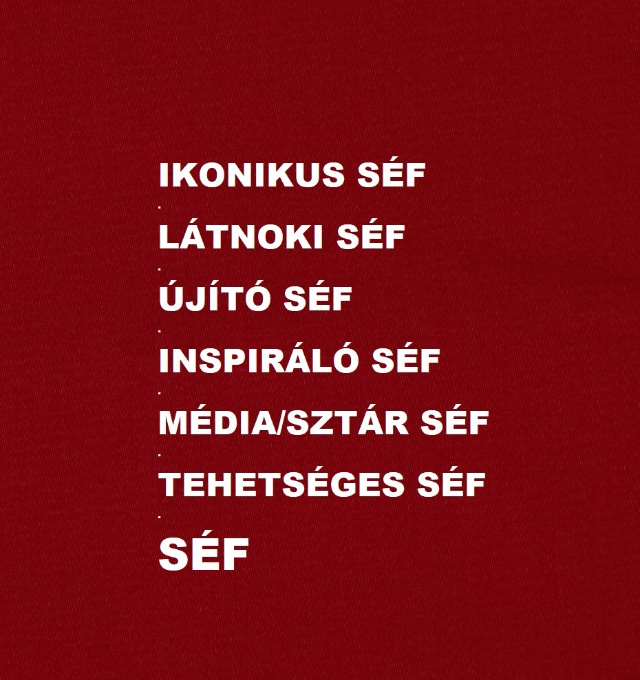 SÉF HIERARCHIA – Számtalan jó szakács van a világon, akiket a hierarchiában főnökként, séfként azonosíthatunk, ám a séfeknek hét szintje van a ranglétrán, s ahhoz, hogy a legmagasabb szintre valaki eljuthasson, kevés az, hogy tehetséges legyen, mivel a „tehetséges séf” is csupán a második a hétfokozatú ranglétrán. Egyébként, ahogy más esetekben is, attól, hogy valaki tehetséges séf, nem lesz automatikusan kiváló séf is belőle. A médiasztár séfekben a szakma iránti tehetség mellett számos más, a képernyőn való szerepléshez szükséges tulajdonságot is felfedezhetünk, s a legjobbak tanítani is képesek. Az inspiráló séfek a