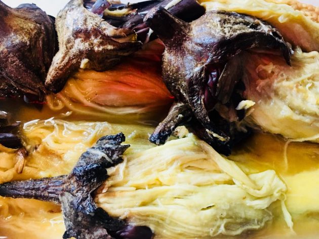 A megsült padlizsánokról a megégett külső héjat gondosan eltávolítjuk – Osama séf padlizsánkrém receptje