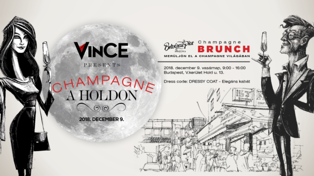 CHAMPAGNE A HOLDON – 2018. december 9. Második alkalommal lepik el a buborékok Budapest első számú evőpiacát, ugyanis december 9-én ismét jön a VinCE Champagne a Holdon. A vasárnap délutánba nyúló villásreggelire a pezsgők, pontosabban a champagne-ok rajongóit várják, hogy különféle ínyencségek mellett végigkóstolják a legjobb champagne-házak kínálatát. A „VinCE Champagne a Holdon” rendezvény célja, hogy az ünnepi