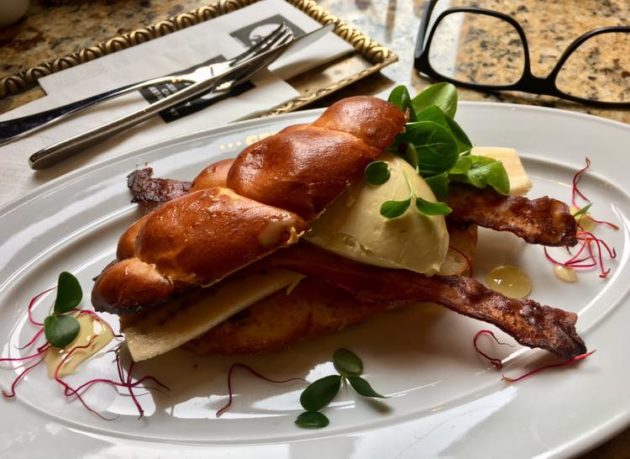 Az „Elvis” Elvis Presley kedvenc mogyorósvajas-banános szendvicse kacsamáj mousse-szal, mézzel, fonott kaláccsal.