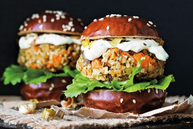 Zöldség-centrikus konyha – zöldséges, vegetáriánus hamburger
