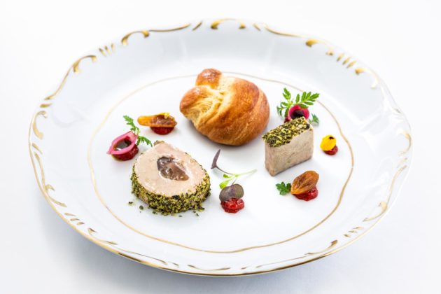 Aranymazsolás libamáj duó, kápialekvár (Kalla Kálmán)